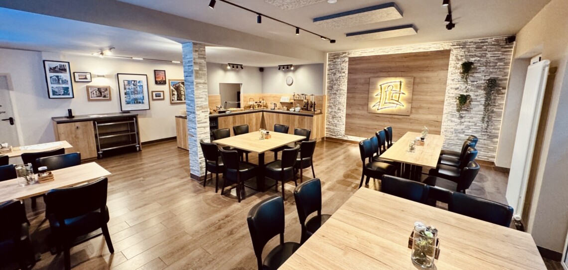 Im Aufenthaltsraum gibt es morgens und abends Buffet, mittags á la Carte